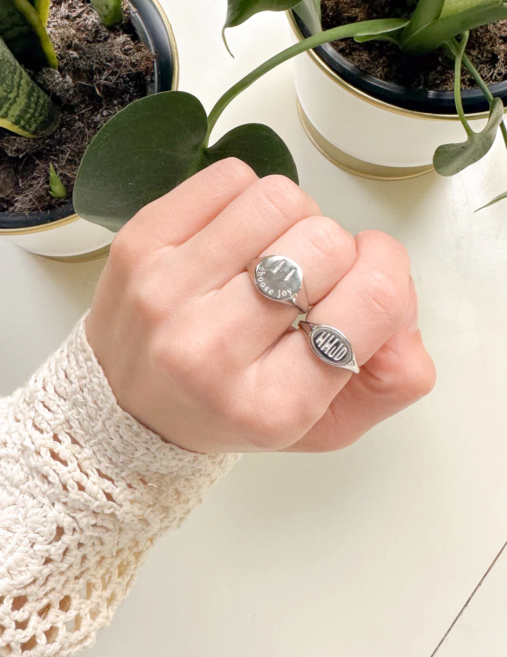 This ring features the classic 'WWJD' statement and is made of 316L stainless steel.